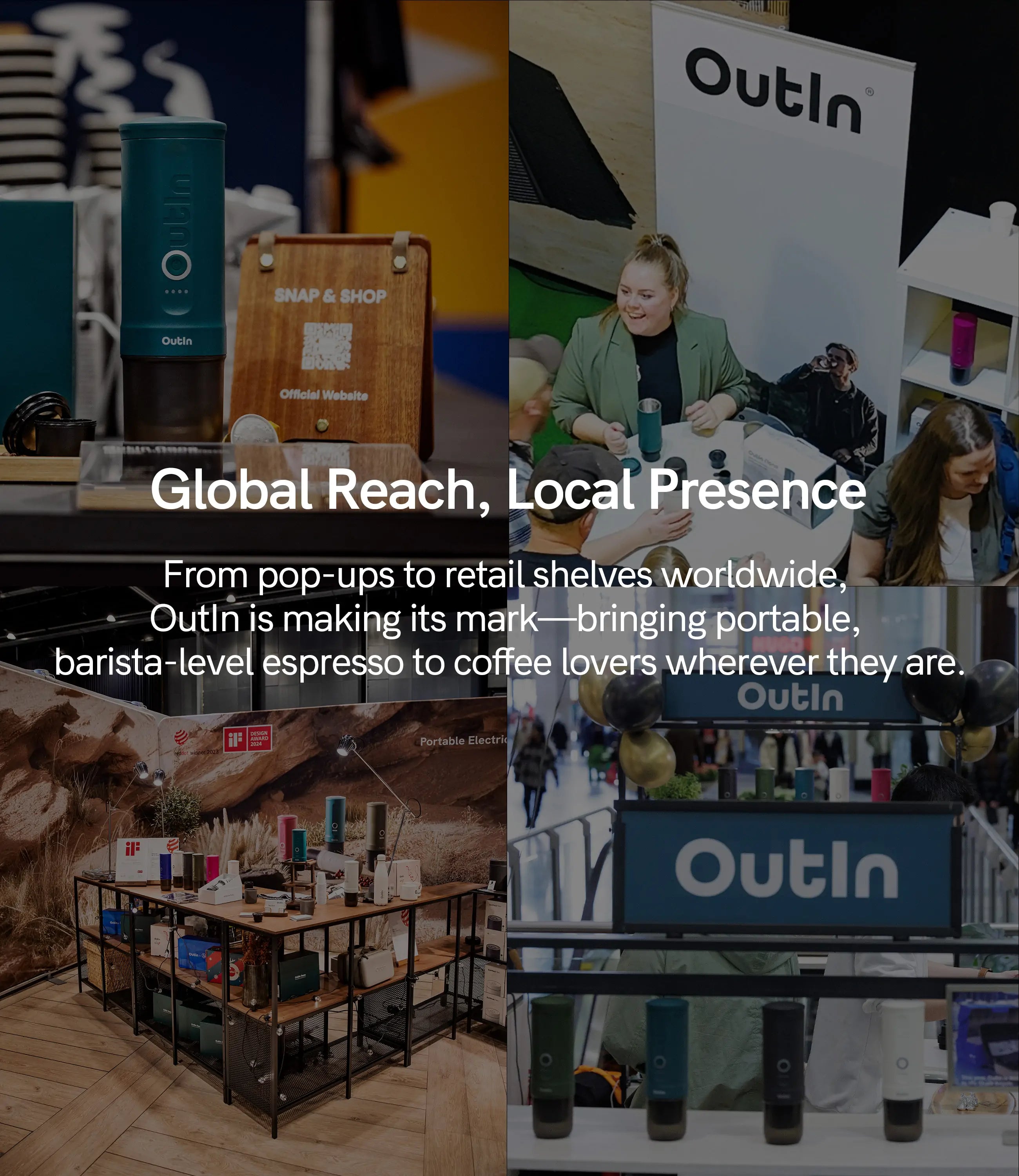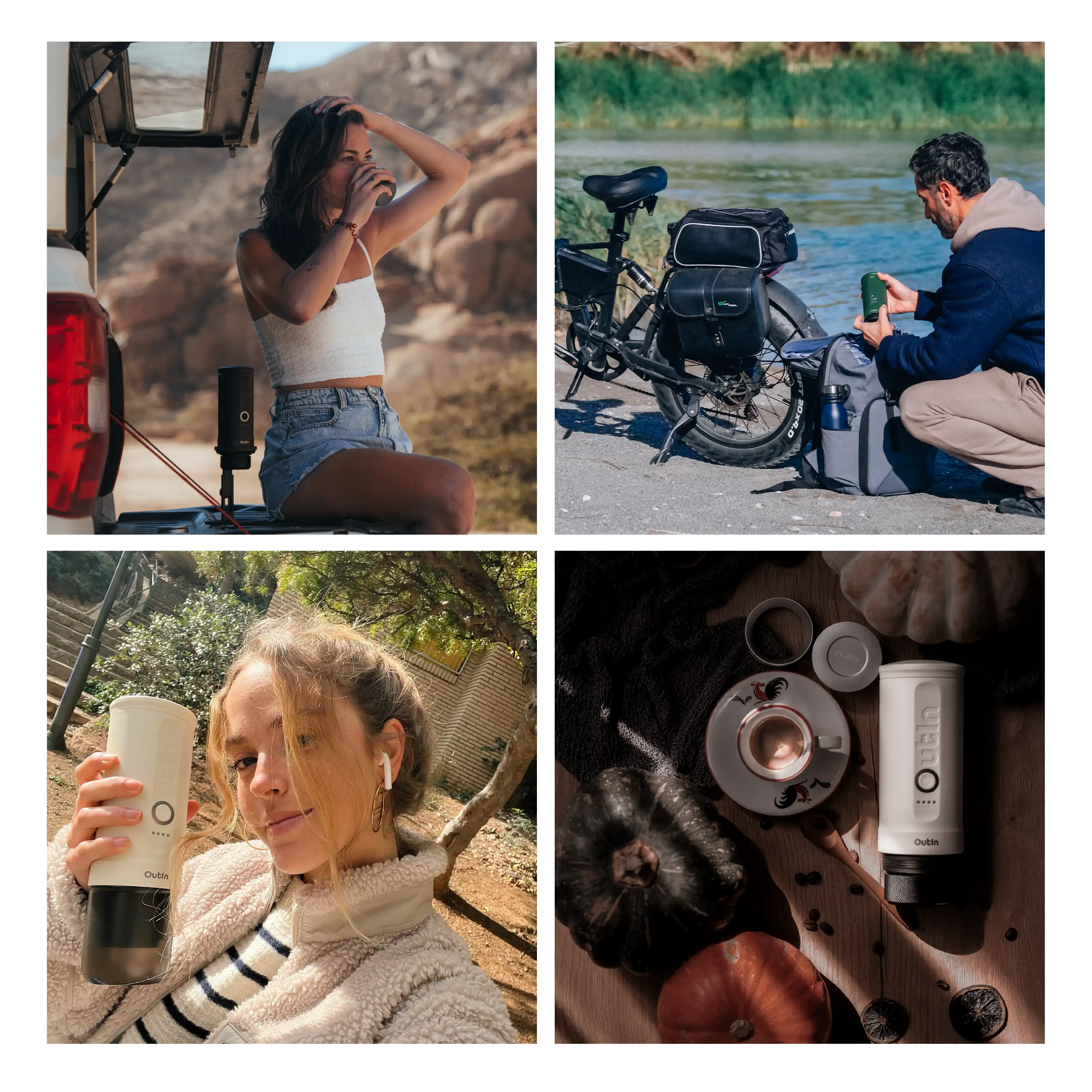 Life is full of incredible coffee moments waiting to be captured. Whether it's sipping a rich espresso on a mountain peak, brewing your perfect cup by the beach, or enjoying a cozy morning at home, we'd love to see how OutIn brings joy to your day.