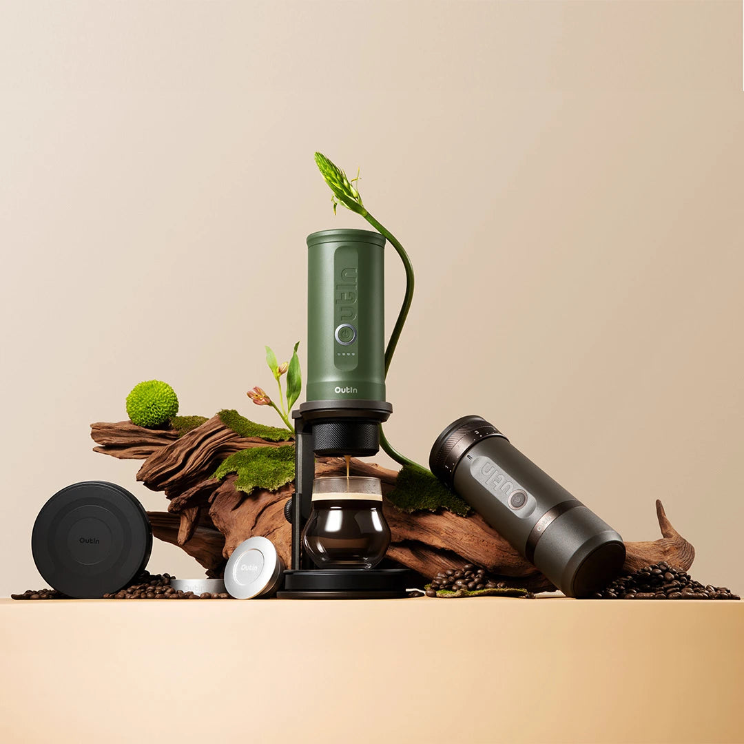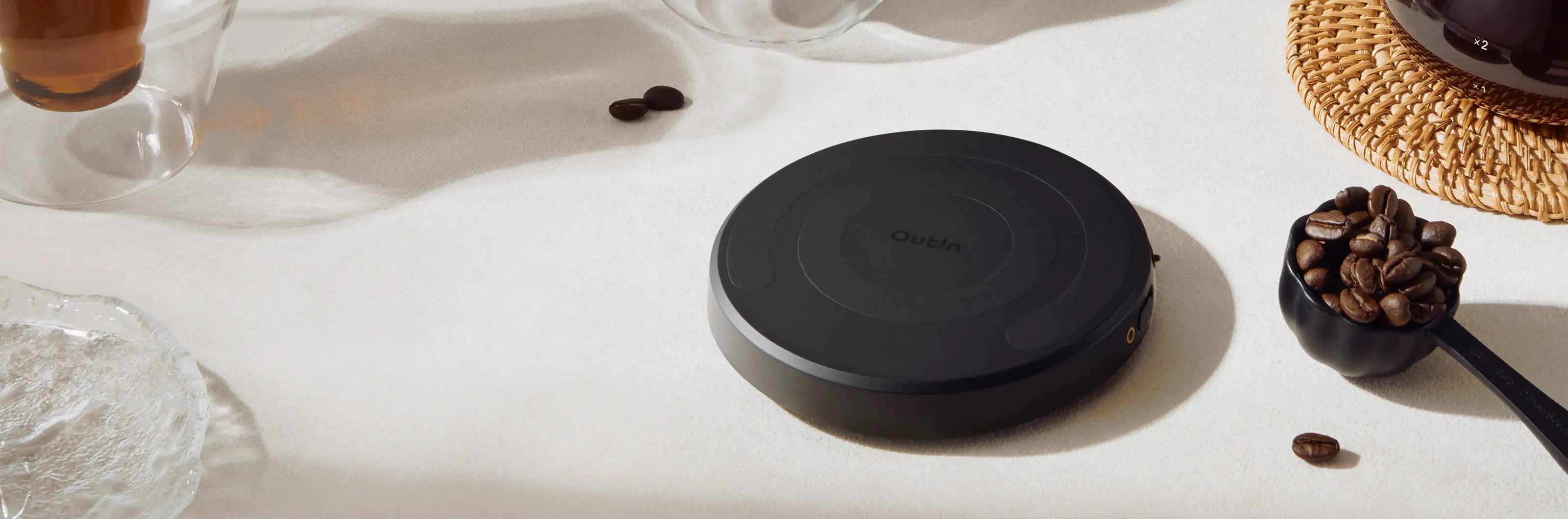 The OutIn Claro Coffee Scale pairs seamlessly with Universal Coffee Stand. Complete your mobile coffee station with the Nano Portable Espresso Machine.