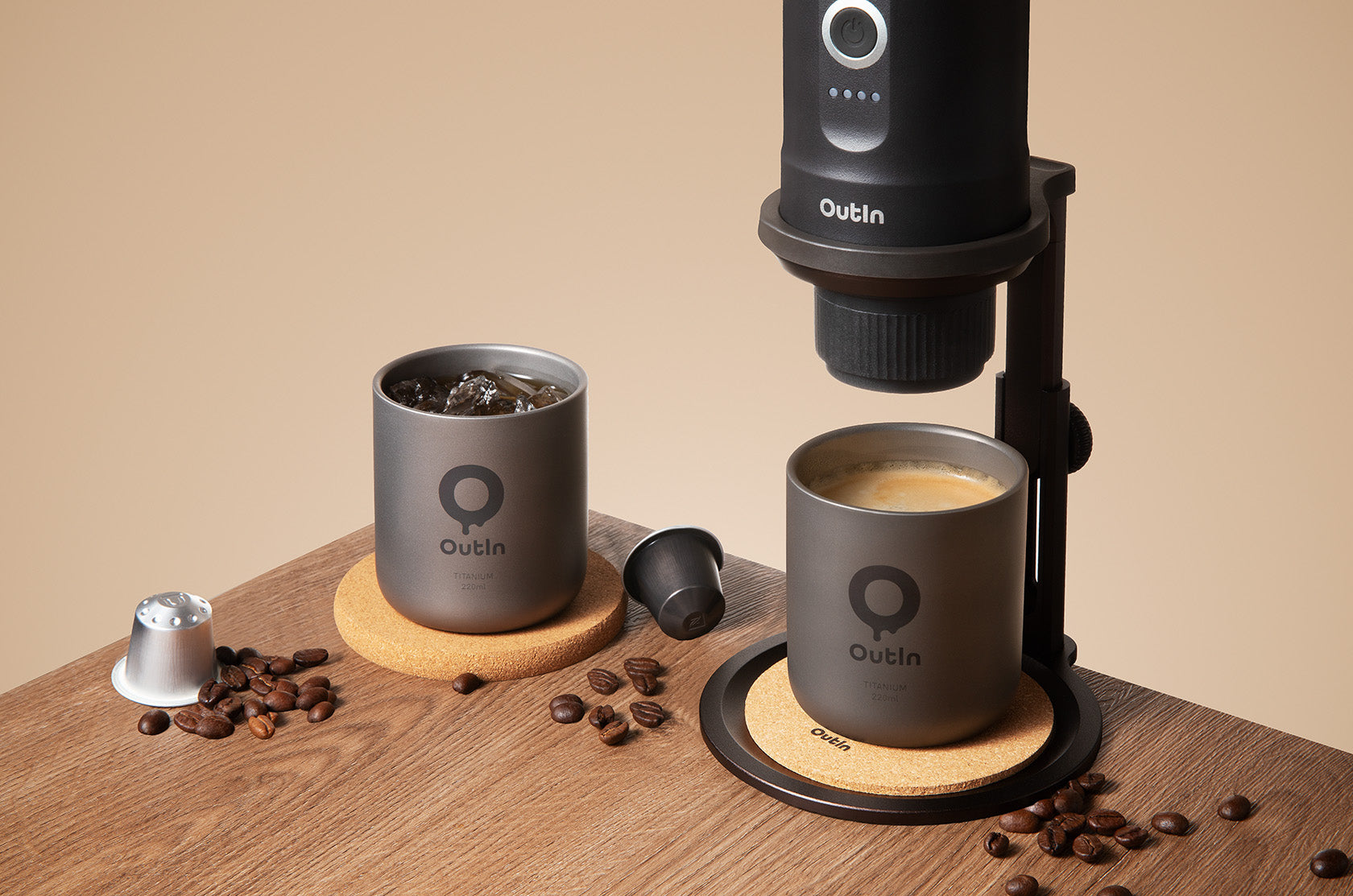 Elevate your brewing ritual with the perfect trio: the Titanium Cup, the sleek Space Grey OutIn Nano, and the Universal Coffee Stand. This setup allows you to extract espresso directly into the pure titanium cup, preserving the authentic flavor and heat of your coffee in a lightweight, travel-ready package.