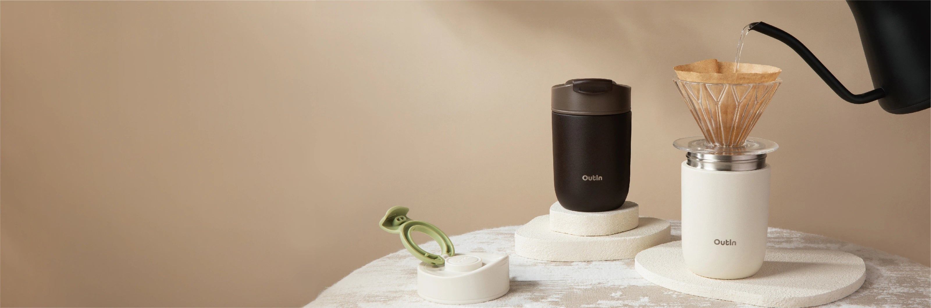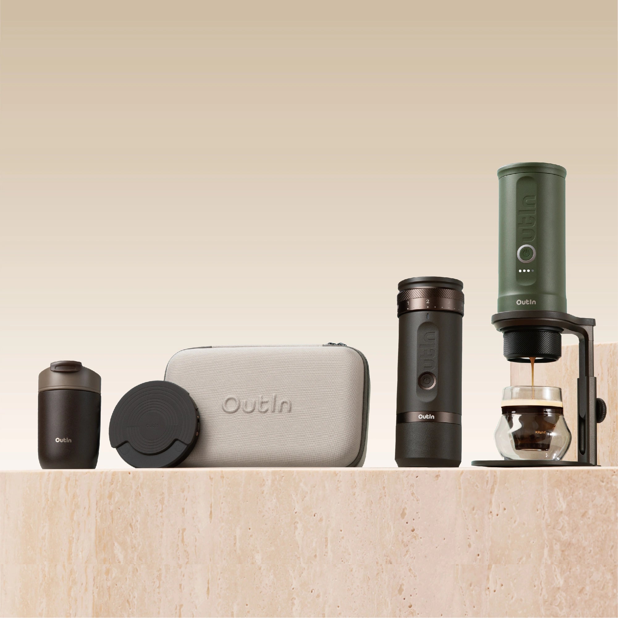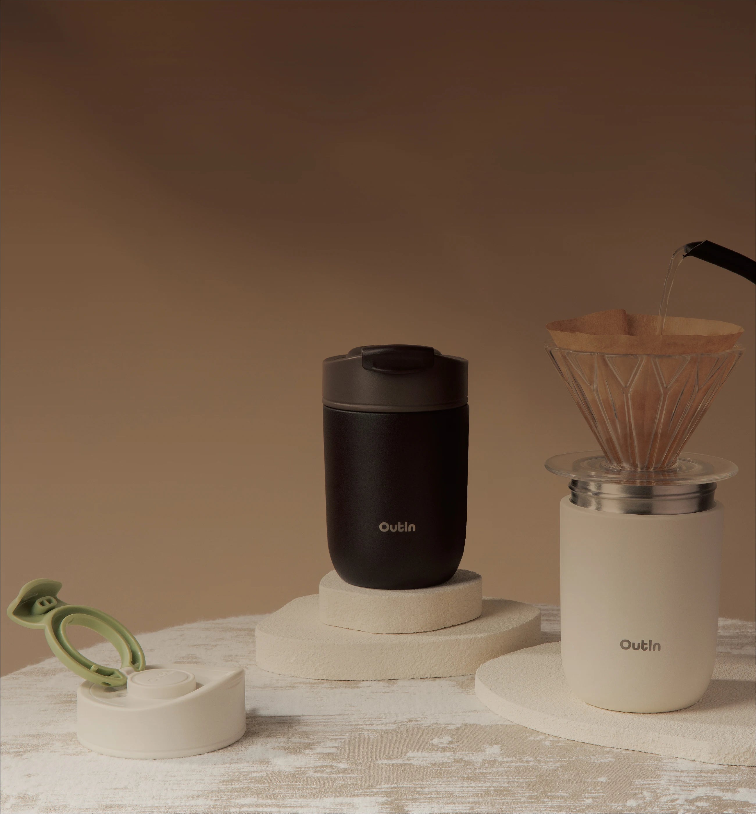 Pair the OutIn Travel Tumbler with your OutIn Nano and Universal Coffee Stand for the ultimate portable coffee setup.